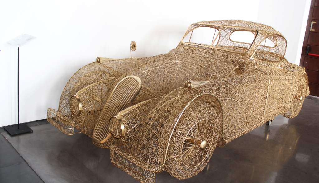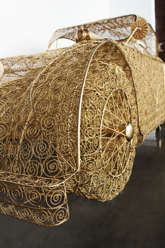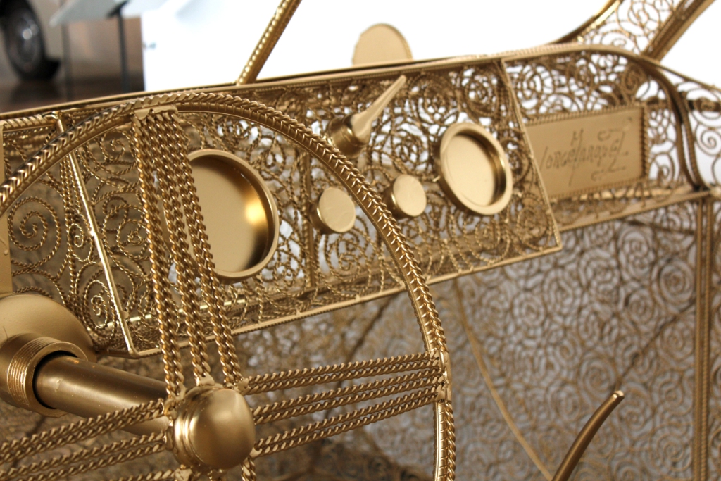Trata-se de um carro em tamanho real feito de verguinha, ferro e arame dourado, trabalhado segundo a mais fina técnica de filigrana. Da autoria do artista plástico português Jorge Marques, o veículo é de uma precisão e realismo impressionante, tendo demorado cinco meses e meio a ficar pronto.