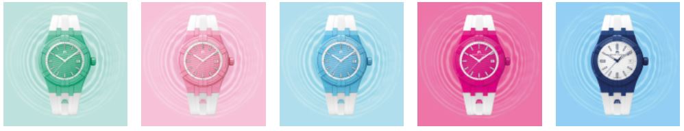 Esta coleção é feita em colaboração com a #tide, especialista em ‘upcycling ocean-bound plastic waste’, que desempenha um papel fundamental para a contribuição de oceanos mais limpos. A marca suíça de relógios firmou uma parceria inovadora e de longo prazo com para coletar garrafas plásticas dos mares que cercam várias ilhas da Tailândia, Indonésia e Filipinas.