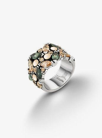 Da coleção fazem parte uns brincos e um anel com sete aplicações em ouro e estrutura com pedras semelhantes a folhas campestres. No interior do anel descubra a gravação “TOSCANA” e três ciprestes, árvore típica desta região italiana.