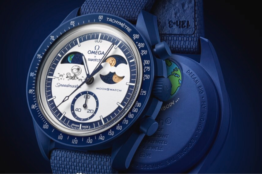 Visualmente, este novo relógio espelha os seus antecessores com a mesma disposição estelar do mostrador, completa com a mais recente inovação da Swatch em matéria de fases da terra, um indicador das fases da lua decorado com Moonshine™ Gold da OMEGA e ilustrações do universo Snoopy.