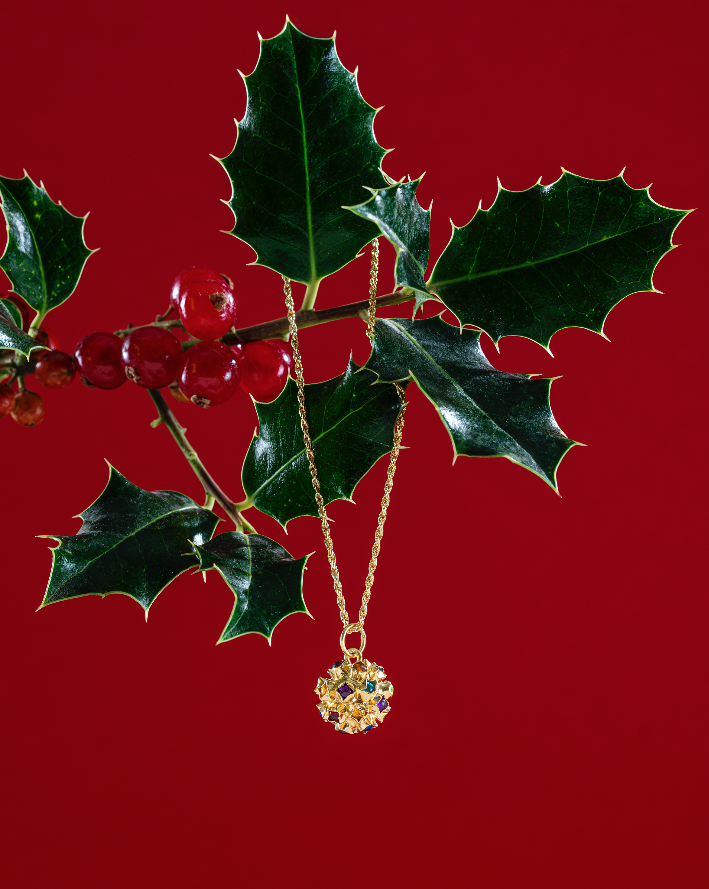 O protagonista desta temporada é o Colar Mina, peça ícone da edição especial de Natal. Inspirado no universo cósmico, o colar combina pedras esféricas coloridas num equilíbrio visual que ecoa movimentos celestes. O design, reconhecido globalmente, é reinterpretado pela ourivesaria portuguesa com uma sensibilidade única — uma paleta cromática que reflete as luzes e vibrações da quadra natalícia.